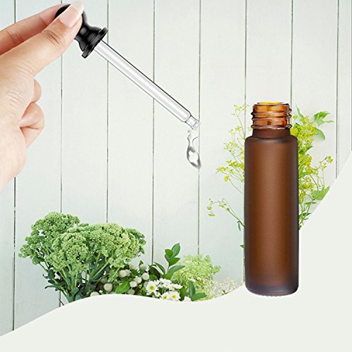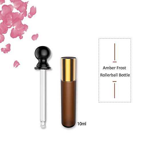 - Beautiful Thick Frosted Glass Amber Roller Bottle: The frosted glass amber bottle will help protect the essential oils or perfumes from direct UV rays while maintaining the beauty of the bottle. Each bottle holds 1/3oz(10ml) of liquid