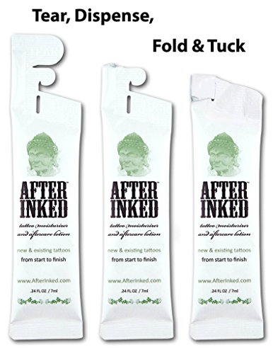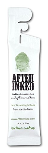After Inked is the World's most valuable and respected brand in the tattoo, piercing and permanent makeup industry! Daily skin moisturizer for new and existing tattoos. It can also be used on any permanent makeup procedure on lips, brows, eyeliner and areola, as well as an after-laser tattoo removal moisturizer lotion. After Inked is Formulated for Perfection and the Premium brand used & recommended by World-Renowned Tattoo Artists. Made in USA. Reclosable pillow pack: Tear, Dispense, Fold and Tuck for multiple uses.