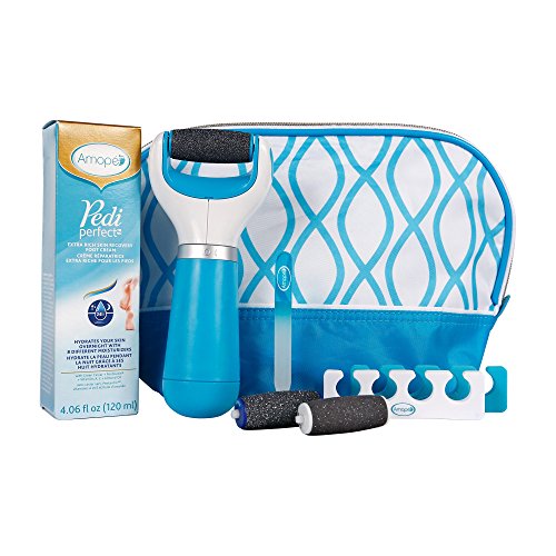 Discover why over 3 million people in the US are fans of the Amopé Pedi Perfect Electronic Foot File and get feet that look great and feel silky smooth and soft without any hassle. Gentle on your feet and easy to use, the Amope Pedi Perfect Foot File buffs away hard skin in minutes leaving you with touchably beautiful feet you will want to show off. This sophisticated pedicure tool is quite simple to use. Gently rotate the Amope Pedi Perfect Foot File over your hard, thick skin to remove dead skin from feet. The specifically designed Micralumina replaceable head is effective yet gentle which makes it an essential piece in your foot care tools. After using the Amope Pedi Perfect Foot File, combine with the use of the Amope Extra Rich Skin Recovery Foot Cream to yield soft, beautiful feet. This pedicure tool does not contain sharp blades you would typically find in a foot shaver, so it's safe to use as directed in the home. And being powered by Four AA Batteries (included), it's the cordless electric foot file that goes with you. It's ergonomic shape makes for easy handling to yield a perfect pedi result. Pedicures have never been so easy! And now with this Luxury Collection it makes the perfect gift set for friends and family. Pack contents: 1 Amope Electric Foot File with 1 Regular Coarse Roller Head, 4 AA Batteries, and 1 Cover. 1 Extra Coarse Roller Head. 1 Soft Touch Roller Head. 1 Amope Extra Rich Skin Recovery Foot Cream (4.06oz). 1 Amope Cosmetic Bag. 1 Glass Nail File. 2 Toe Separators.