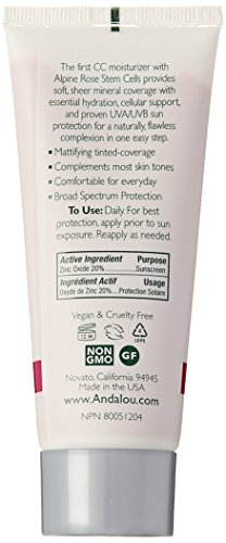 Andalou naturals fruit stem cell science renews skin at the cellular level, blending nature and knowledge for visible results. The first cc moisturizer with alpine rose stem cells provides soft, sheer mineral coverage with essential hydration, cellular support, and proven uva/uvb sun protection for a naturally, flawless complexion in one easy step. Mattifying tinted-coverage works great for most skin tones and is comfortable for everyday wear.