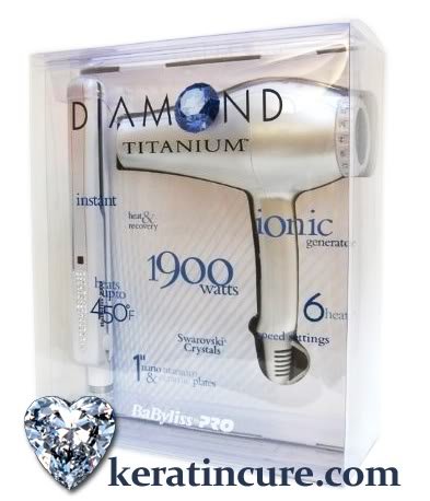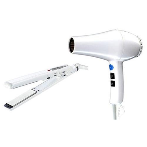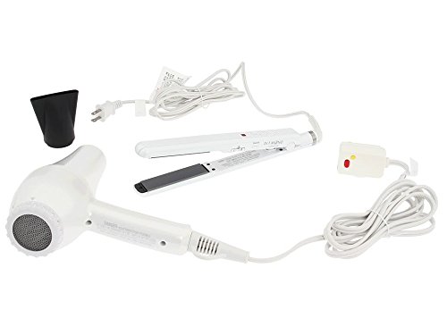 Set contains the White Diamond 6 Heat/Speed Settings. 1″ Nano Titanium & Ceramic Plates on the Straightening Iron, both are encrusted with Swarovski Crystals.
