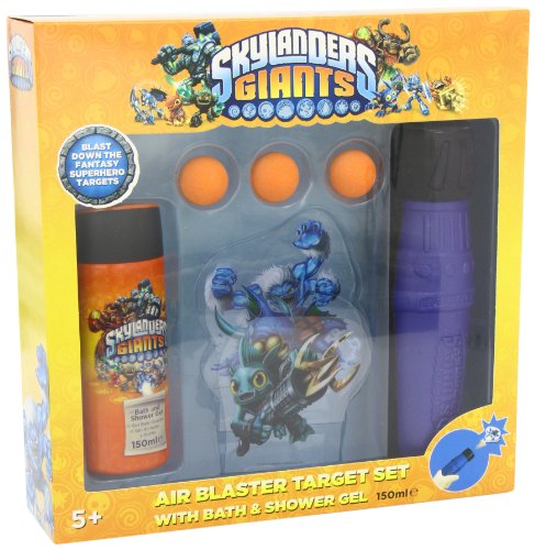 The Skylanders Blaster Set is a great way to spend time in the bath. Load up the air blaster with the 3 EVA balls and fire at the PVC “baddies”. Watch them fall as you hit your target. Use the 150ml bubble bath to create fun bubble as you do it.