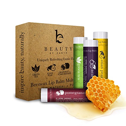 Beauty by Earth LIP BALM ★ 100% Natural Beeswax Peppermint Lip Care with Shea Butter, Vitamin E, Coc..
