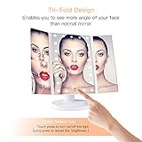 - 180-DEGREE FREE ROTATION: The lighted makeup mirror stands on your countertop can be freely adjusted and fixed a perfect and comfortable viewing angle. Tri-fold and detachable design makes you can take it anywhere you go.