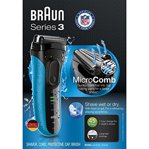 The world's best-selling foil shaver is now even better with the introduction of the latest generation of Braun series 3. With new micro comb technology the series 3 catches and feeds more hair into the cutting parts, for a faster shave than ever before. Thanks to its triple action cutting system and sensofoil the series 3 not only delivers even better shaving performance on 3-day beards, but is also incredibly smooth on skin. Tested vs. Previous series 3 generation.