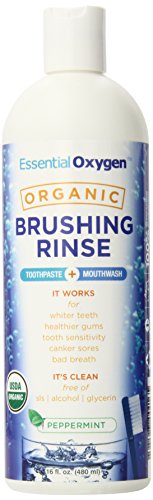 Essential oxygen brushing rinse offers a better way to brush for pristine oral health. This toothpaste-mouthwash works for all oral issues including whitening, gum pockets and receding, tooth sensitivity, bad breath, tartar, canker sores and morning mouth; and does so organically with no objectionable ingredients like alcohol, glycerin, sodium lauryl sulfate or fluoride.