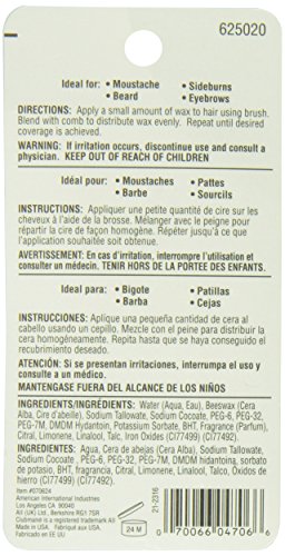 Clubman Moustache Wax is ideal for moustache, beard, sideburns & eyebrows. Covers gray. No dripping or mess. Kit includes .5 oz. wax & comb/brush. (.5 oz.)