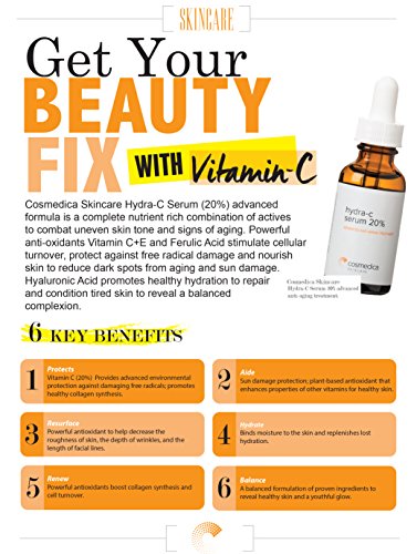 - Powerful antioxidants in this Vitamin C E and Hyaluronic Acid Serum work synergistically for maximum potency (20%) and effective absorption into skin