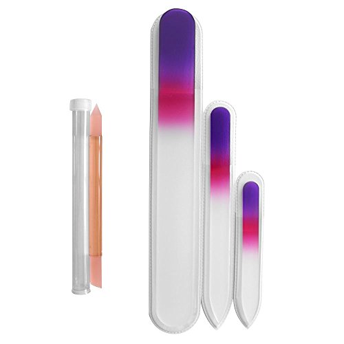 - NAIL CARE MANICURE PEDICURE KIT: Ideal for complete fingernail & toenail care for ideal nail care treatment. Includes 1 Large Pedicure Glass File (195mm length, 4mm thick, rounded end), 1 Medium Manicure File (135mm length, 2mm thick, pointed end) & 1 Glass Nail File Small (90mm length, 2mm thick, pointed end). Free Glass Manicure Stick included for optimal nail care