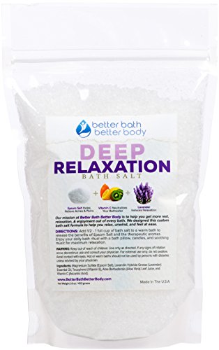 *NO CHEMICALS, NO PERFUMES, & NO DYES* This Deep Relaxation Bath Salt formula is 100% natural and includes zero chemicals, perfumes, or dyes. The next time you purchase Bathing Salts for your tub or spa, be sure to double-check the ingredients. Unfortunately, many bath salts often include added chemicals, fragrances, perfumes, and dyes. These unnecessary ingredients are bad for your body and your bath-tub.