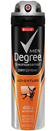 Try new Degree Men Adventure Dry Spray Antiperspirant: the new way to get superior protection that goes on instantly dry for a cleaner feel. Features a superior 48 hour motion sense formula that endures any adventure with a rugged, woodsy fragrance that blends clean citrus with long-lasting notes of wood and musk.