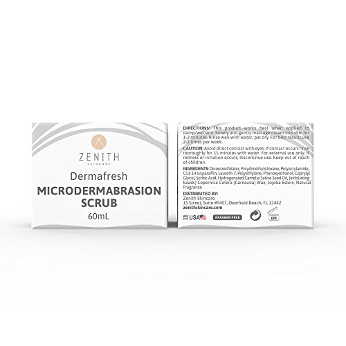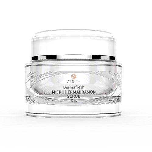 Dermafresh microdermabrasion scrub by Zenith Skincare removes dead skin cells and clears pores preventing acne breakouts while moisturizing and banishing the over production of grease, containing crystals, pumpkin extract and pineapple extract