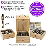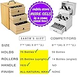 Essential Oil Box – Wooden Storage Case With Handle. Holds 75 Bottles & Roller Balls. Natural Plant Based Wax Finish. Large Organizer Best For Keeping Your Oils Safe. Free EO Labels