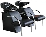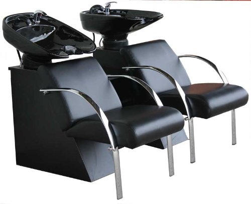 • Die Doppel-Rückwärtswaschanlage CAVALESE verfügt über zwei kippbare Porzellanbecken, Edelstahlschläuche, hochwertige Mischbatterien (Kartusche wechselbar), zwei Handbrausen und zwei Ablaufsets. Die Sitzflächen bestehen aus gepolstertem Kunstleder.