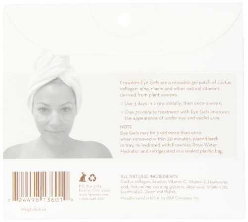 - Frownies Eye Gels are a reusable gel patch of cactus collagen, aloe, niacin and other natural vitamins derived from plant sources