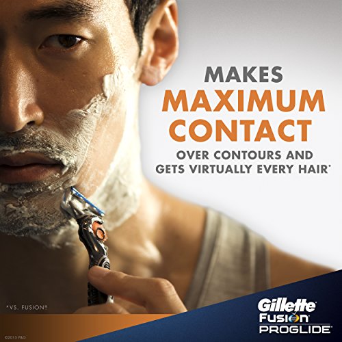 Gillette fusion proglide razor with flexball technology, the men's razor that responds to contours for gillette's best shave. Gillette's best razor blades are 2x preferred when used with the fusion proglide razor with flexball handle technology. Gillette fusion proglide razor blades feature a precision beard trimmer for accurate edging. Reengineered low cutting force razor blades feature thinner, finer blades with advanced low-resistance coating to cut effortlessly through hair with less tug and pull than fusion. A blade stabilizer maintains optimal razor blade spacing for comfort, while allowing the razor blades to respond to the contours of a man's face. Plus, the streamlined comfort guard channels excess shaving cream to produce optimal blade contact, stretching the skin for a close, comfortable shave. And the razor's enhanced lubrastrip is infused with mineral oil and lubricating polymers that allow the gillette fusion proglide razor blade to move smoothly over skin, even on repeat strokes.