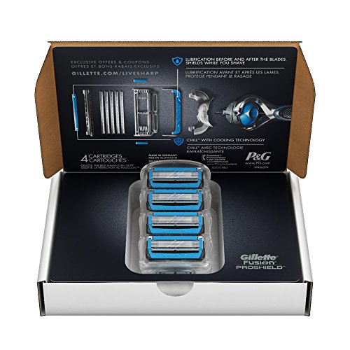 Gillette Fusion ProShield Chill men's razor refills have blades that shield while you shave. ProShield Lubrication before and after the blades lays down a protective layer to shield from irritation. Plus, Chill razor cartridges feature Cooling Technology during the shave. Gillette Fusion ProShield is Gillette's most advanced razor. Just look for the blue blade and handle. Among Fusion razors.