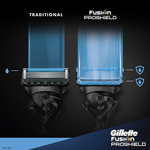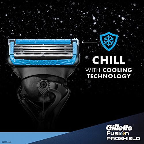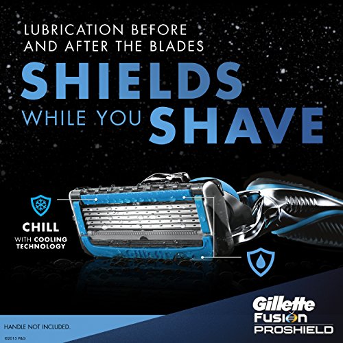 Gillette Fusion ProShield Chill men's razor refills have blades that shield while you shave. ProShield Lubrication before and after the blades lays down a protective layer to shield from irritation. Plus, Chill razor cartridges feature Cooling Technology during the shave. Gillette Fusion ProShield is Gillette's most advanced razor. Just look for the blue blade and handle. Among Fusion razors.