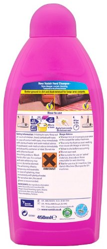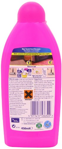 NOUVELLE FORMULE! 5 x plus enlever la saleté avec la neutralisation des odeurs. Disparition tapis et de meubles rembourrés Shampooing main revitalise vos tapis fournir une solution complète de nettoyage de tapis. Nettoyage: Avec son oxygène actif Vanish pénètre profondément dans votre tapis pour desserrer et se soulever même celles séchées dans les taches et la saleté. Actualisation: L'oxygène actif dans Vanish neutralise les odeurs désagréables. Anti-salissures Re: La mousse séchée à des cristaux qui peuvent être facilement aspirés loin donc il n'y a pas de résidus collants pour provoquer re-salissures. 450 ml