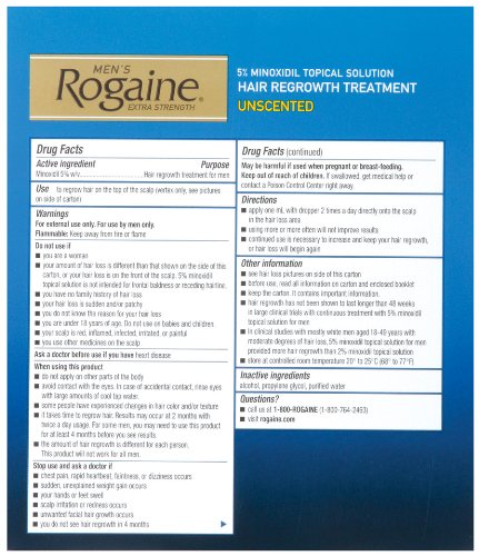 ![ROGAINE [E2]for Men Hair Regrowth Treatment, Extra Strength Original Unscented (Three-month Supply of Three 2-fluid-ounce Cans) Lifestyle Image](http://g-ecx.images-amazon.com/images/G/01/hpc/detail-page/c26-B0012BNVE8-3-s.jpg)