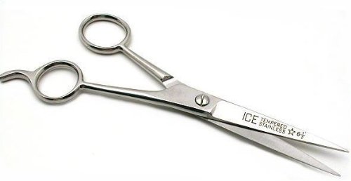 6 1/2″ Shears for Hair Stylists & Barbers This is a new pair of shears Great for hair stylists and barbers These are made of ice tempered stainless steel Ice tempered steel holds an edge longer than regular stainless steel Has a thumb rest for your convenience They measure approximately 6 1/2″ (165 mm) long