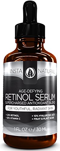 Our Age-Defying Retinol Serum has an abundance of antioxidants and nutrients that will help your face feel firm, youthful and renewed. – Packed with 2.5% of Retinol that protects against free-radical damage, helps reverse the appearance of sun damage and the telltale signs of aging. – Powerful antioxidants that trap moisture to prevent future loss so you can enjoy a more youthful appearance with firmer, plumper skin. – A versatile serum that can be worn under makeup and is also friendly to sensitive skin for daily use, day or night