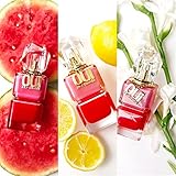 Say Oui to Juicy Couture's new designer perfume that demands the occasion of making a statement. This vibrantly rich women's perfume will have you saying Oui! to a burst of nostalgic pops providing mouthwatering freshness. Playful and fruity, the colorful concoction of Watermelon and Lemon creates a brand new, Watermelon accord. The chic sophistication of Jasmine Absolute paired with provocative Wild Tuberose creates an iconic duo while a modern sense of addiction is born through sleek Techno Woods. Together they explode with vibrant hues and subtle sweetness. Whether you're looking for your new signature scent or the perfect gift, Oui Juicy Couture will captivate and fascinate with its exclusive fragrance.