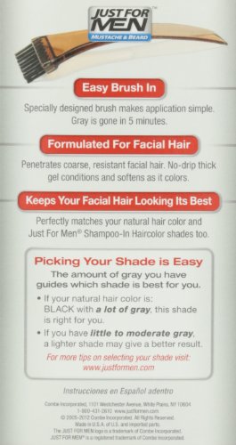 Accommodates A Couple Of purposes. Genuine Color Components. Ambitions most effective gray for a Natural seem to be. 5 Simple minutes. The Arena's leader in Males's haircolor. Formulated for Facial Hair: Penetrates coarse, resistant facial hair. No drip thick gel stipulations and softens because it colours. Seems To Be Natural: Targets most effective the grey hair. Replaces it with delicate tones that Fit your Natural hair Colour. Fits shampoo-in haircolor colorings completely, too. In Point Of Fact Lasts: Deep-penetrating Shade lasts unless grey grows again. And, you get Multiple purposes from each field. Quick and simple: Removes grey in 5 minutes. Easy software with ergonomic brush. Can't-Miss Coloration: Just For Men is available in 11 Pure-having a look colorings. So, it's Straightforward to search out one that truly Suits your Natural hair Color. Can't decide between two colors? Try the lighter one first. Which You Could at all times go darker later. 2005 Winner: Males's Health Grooming Awards. Made in UNITED STATES.