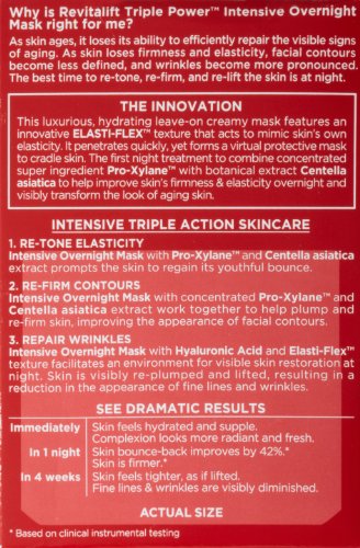 As Skin ages, it loses its means to efficiently Restore the seen indicators of getting older. As Pores And Skin loses firmness and elasticity, facial contours grow to be less defined, and wrinkles turn into extra pronounced. The Perfect time to re-tone, re-firm, and re-Elevate the Pores And Skin is at Night Time. L'Oreal Paris' high-priced, hydrating leave-on creamy Masks Features an revolutionary ELASTI-FLEX texture that acts to mimic Pores And Skin's own elasticity. Revitalift Triple Power Night Time Mask penetrates quick, but kinds a digital protecting Mask to cradle Skin. It's the first Night Time Treatment to combine Concentrated super ingredient Pro-Xylane with botanical extract Centella Asiatic to lend a hand give a boost to Skin's firmness & elasticity Overnight and visibly grow to be the seem to be of getting older Pores And Skin.