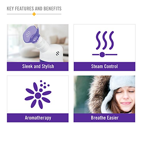 - Sleek and Stylish. This vibrant purple and white steam inhaler will add sleek style to your décor.