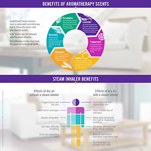 This natural approach helps to relieve inflammation and upper respiratory congestion by loosening secretions and reducing mucus levels. Muscles relax, coughing and throat irritation subside. The Mabis Steam Inhaler also comes with an aromatherapy tank to fill with your special scents.