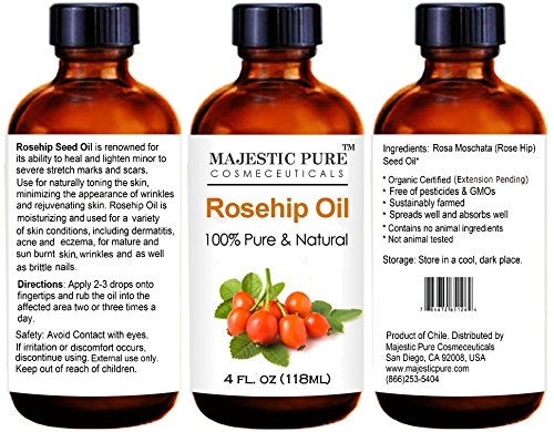 • LARGE 4 OUNCE and PREMIUM QUALITY GLASS DROPPER inside each bottle for ease-of-use. 100% GUARANTEE – Purchase with complete peace of mind, we are confident we have developed the absolute best Rosehip Oil. If you are not completely satisfied with Majestic Pure Cosmeceutical Rosehip Oil, we will refund your entire purchase