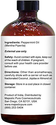 Peppermint Oil is a potent Oil With the Power of Menthol Offering Multiple Health and Household Benefits. It is popular due to it's wide range of uses and therapeutic benefits. Helps to improves energy levels. Peppermint essential oil provides a wonderful cooling sensation while it naturally alleviates discomfort. It is knows to keep mosquitoes spiders, mice, roaches, fleas & ants away. It is intense and far more concentrated than other essential oils. The topical application of peppermint oil is generally safe, although it is necessary to dilute with a carrier oil such as fractionated Coconut, jojoba or Almond oil. Majestic Pure Peppermint Oil is Steam Distilled Highest Quality Oil Extracted from the leaves and flowers/buds of Mentha Pipe Rita. Our oils are by far the most effective on the market