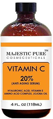 Look Younger Without Using Bunch Of Makeup. Experience The Anti Aging Power Of Majestic Pure Vitamin C + Amino + Hyaluronic Acid. Leaves Your Skin Beautiful and Radiant. Vitamin C is critical for human body and plays an important role in maintaining resilient skin. Vitamin C 20% skin serum is a high potency serum for use on facial areas. It fights premature aging and UV damage by replenishing vitamin C levels to on skin help to combat and even reverse time effect on face. With the antioxidant properties, Vitamin C face Serum is a key co-factor in the production of collagen which improves skin tone and texture. Stabilizing levels of vitamin C helps to counteract wrinkle formation. The Vitamin Serum fights free-radical damage and sun damage and improves pigmentation issues. It protects against UV damage like discoloration and fine lines. You will not find a better higher quality and Effective Vitamin C Serum on the market with 98% natural 70% organic ingredients. Purchase with complete peace of mind, we are confident we have developed the absolute best Vitamin C Serum 20 available. If you are not completely satisfied with Majestic Pure Vitamin C Serum, we will refund your entire purchase. Click the Button at the Top of this Page to Buy with Confidence
