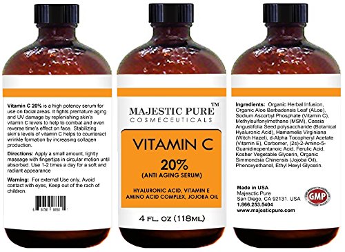 - 100% GUARANTEE – Purchase with complete peace of mind, we are confident we have developed the absolute best Vitamin C Serum available. If you are not completely satisfied with Majestic Pure Vitamin C Serum, we will refund your entire purchase
