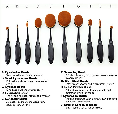 - Toothbrush-styled 10-brush makeup set; comes packaged in a high quality, gift-box.