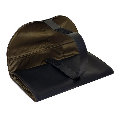 - Comes with a roll-up storage train pouch (21 x 9.5 inches; 54 x 24 cm) with a black exterior and brown interior