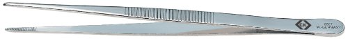 Carbon steel, hardened, polished and fine nickel plated. Fine, blunt tips, 2mm wide, straight. Finely milled inside.