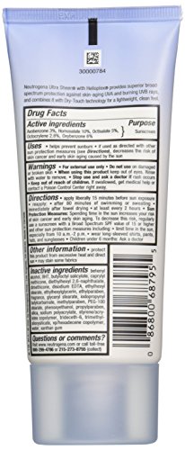 If used as directed with other sun protection measures (see Directions), decreases the risk of skin cancer and early skin aging caused by the sun. Neutrogena UltraSheer with Helioplex provides superior broadspectrum protection against skinaging UVA and burning UVB rays, and combines it with DryTouch technology for a lightweight, clean feel.