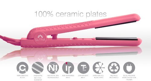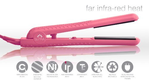 Discover the beauty of your hair with the versatile Sutra Flat Iron. Our dynamic styling tool is designed with 100% solid ceramic plates that distribute heat evenly across the iron. Even heat distribution eliminates damaging hot spots and straightens the hair with one single pass. The Sutra Flat Iron also uses FAR Infrared Technology, a form of heat that mends broken hair cuticles, resulting in softer, healthier and shinier hair. Whether you are in the mood for stunning straight hair, glamorous curls or natural waves, the floating plates make it possible to accomplish all three styles with one single tool. The temperature control allows you to adjust the heat to your comfort level. Styling your hair just got a lot easier.