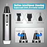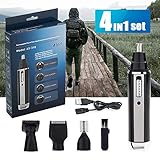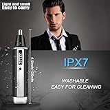 - Multipurpose: This ear and nose hair trimmer for men comes with 4 different trimmer heads, the nose hair clippers for men gently remove your unwanted hair for your nose, ear, eyebrow, sideburns in seconds. No need to spend money to buy more ear hair trimmer for men and you can enjoy trimming at home, in the car or hotel with peace of mind.