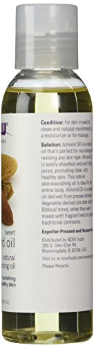 100% Pure Almond Oil is an all-natural oil that's perfect for nourishing and reviving any skin type. Almond Oil is easily absorbed and won't clog pores, promoting clear, soft, healthy skin. This all-natural skin-nourishing oil is idea for the entire body. Almond Oil is an all-natural oil derived from pressed almonds. Vegetable-derived oils date back to Biblical times, when they were mixed with fragrant herbs to create traditional ointments.