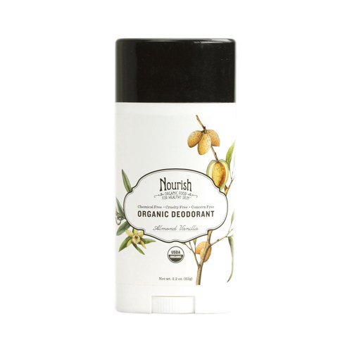 Nourish Organic Deodorant. Almond Vanilla. Description: Organic Food For Health Skin. Chemical Free. Cruelty Free. Concern Free. USDA Organic. Lightly scented with organic vanilla and almond, this blend of naturally deodorizing cornstarch and vegetable protein, soothing shea and cocoa butters, beeswax, and coconut oil leaves you feeling fresh all day, every day. Free Of Parabens, phthalates, petrochemicals, artificial fragrances, preservatives, silicones, propylene glycol, mineral oils, sulfates, synthetic dyes, triclosan, EDTA and aluminum. Disclaimer: These statements have not been evaluated by the FDA. These products are not intended to diagnose, treat, cure, or prevent any disease.