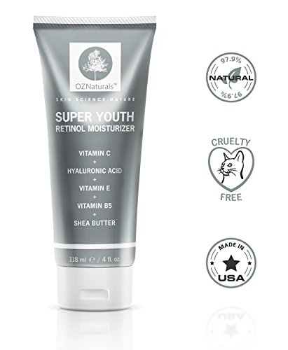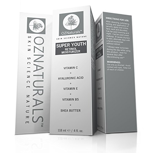 Retinol is a form of Vitamin A – and also one of the most powerful weapons in any anti-aging skincare regimen. OZNaturals Super Youth Retinol Moisturizer is a potent cocktail of retinol + antioxidants formulated to help diminish the appearance of fine lines, wrinkles, and premature aging due to sun exposure. This results-oriented anti aging night cream fights free radical damage as well as assists in restoring and renewing firmness, elasticity, and thickness to the skin. Retinol cream boasts a long list of anti-aging and anti wrinkle properties. Regular use of OZNaturals Super Youth Retinol Moisturizer can reduce the appearance of wrinkles, improve skin texture, reduce the appearance of pore size, diminish the appearance of brown spots and create luminosity and glow.