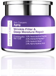 Get younger looking skin, with Physicians Formula Rx 133 Deep Wrinkle Filler and Deep Moisture Repair. The intensely moisturizing cream is a topical alternative to dermatological injectable filters combating extreme dryness and the appearance of deep wrinkles, the visible evidence of ultra-dry and weakened skin. Works effectively overnight when skin is at its prime time for repair. Deep filling action plumps skin to smooth the appearance of lines and wrinkles.