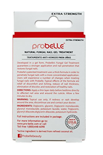 Developed in a gel form, Probelle's Fungal Gel Treatment guarantees a stronger application and nail penetration that restores fungal nails. Probelle's patented treatment uses a thick formula in order to penetrate fungal nails with a more concentrated application. Users will experience a number of changes when treating fungal nails with Probelle. Typical ejects of the formula are relief of discomfort and itching, reduce of nail thickness, elimination of discolor, and restoration of healthy nails.