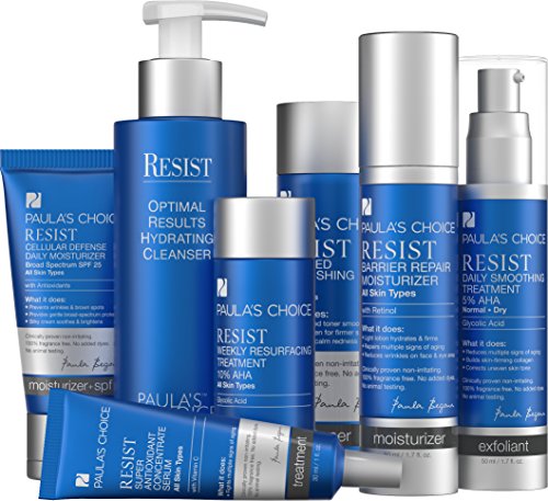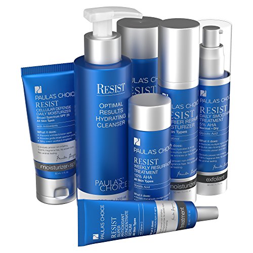 - 7 products: cleanser, toner, exfoliant, day moisturizer with SPF, night moisturizer, treatment, weekly treatment