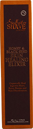 Shea Moisture Skin Healing Elixir Honey and Black Seed. Description: Organically Heal Ingrown Hairs, Razor Bumps and Skin Discoloration. What It Is: Our healing elixir of Aboriginal Tea Tree Oil, organic Jojoba oil, unrefined African Shea Butter, Witch Hazel, Black Seed Oil and Vitamins A, B and E provides instant relief and moisture while protecting open pores from bacteria. Anti-inflammatory Arabian Honey aids in tissue healing, and reduces inflammation and scarring. Willow Bark extract helps soothe sensitized skin, reduce redness and prevent the occurrence of ingrown hair. Disclaimer These statements have not been evaluated by the FDA. These products are not intended to diagnose, treat, cure, or prevent any disease.