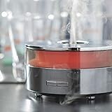 Our signature diffuser with the best elements including color, style, lighting and mist. No heat or chemicals. Easy to clean and operate; selected by some of the most celebrated spas in America. FEATURES Color: Chrome Water Capacity: 115 milliliter(4 fl oz) Suggested Room Size: 150-200 sq ft Continuous Operation: Up to 3 hours Intermittent Operation: Up to 6 hours at 15-sec intervals Light Mode: Rotating, solid color and off Power: AC adapter included, UL approved Automatic safety shut-off. INSTRUCTIONS FOR USE 1. Remove the Top Cover from the Main Body. 2. Fill the Water Tank up to Max Fill Line with cool tap water. Do not overfill or mist output may be low. Add a few drops of your choice of pure essential oil to the Water Tank. 3. Replace the Top Cover. 4. Connect the AC Adapter to the DC Plug on the back of the unit. Then plug the Adapter into the wall outlet. 5. Button Functions: Left Side – Light: 1st push = rotating color 2nd push = maintains solid color 3rd push = turns lights OFF Right Side – Mist: 1st push = continuous mist up to 3 hours 2nd push = intermittent mist up to 6 hours at 15-second intervals 3rd push = turns the mist function OFF 6. The unit will stop misting when water level becomes too low. Note that the light must be manually turned off. 7. Use only 100% pure essential oil.