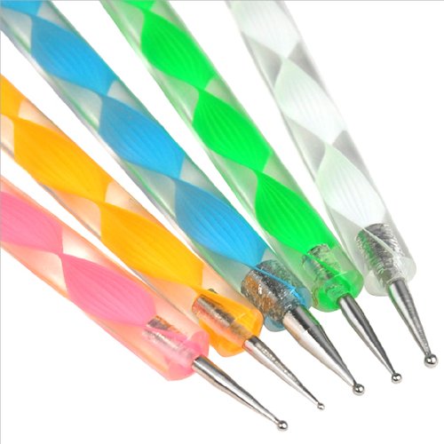 - 5 nail dotting pen with 2 varied ends for various marbleizing needs